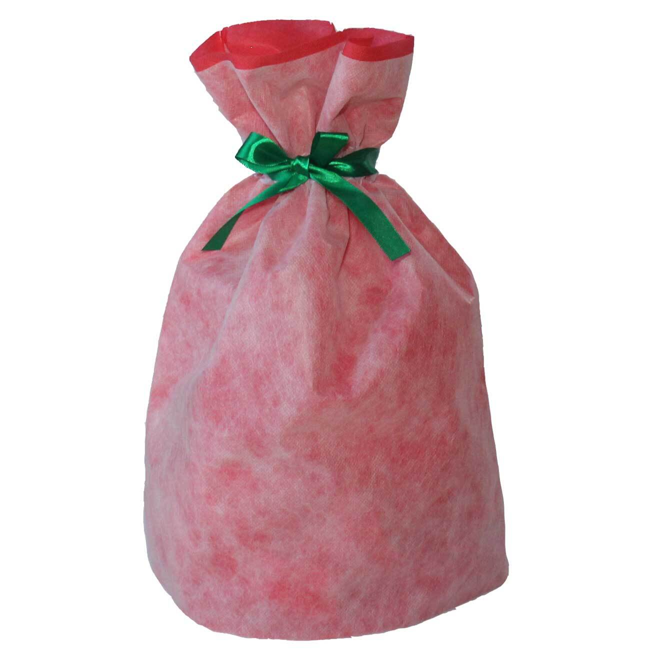 不織布を2層に重ねたギフト巾着袋です。両脇のリボンを引っ張って結ぶだけの簡単ラッピング。